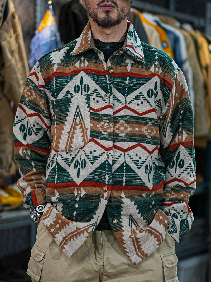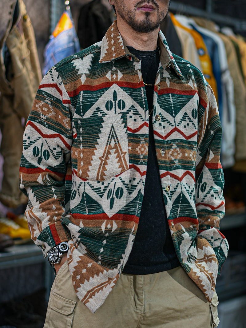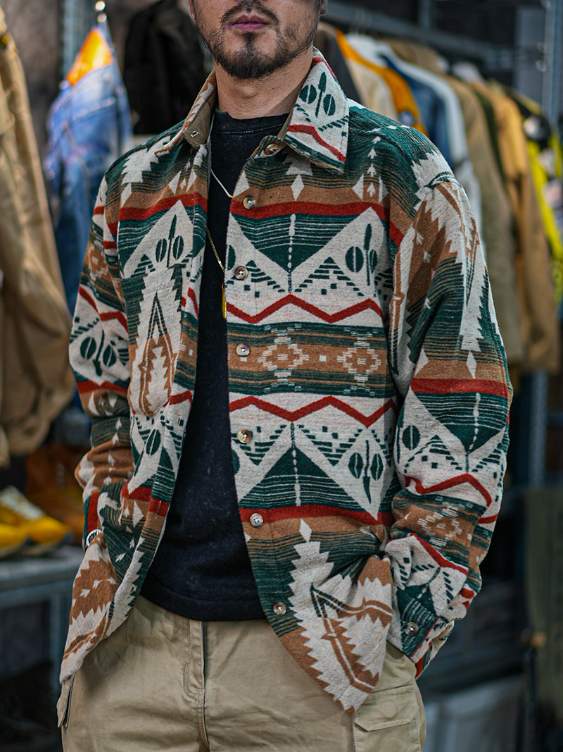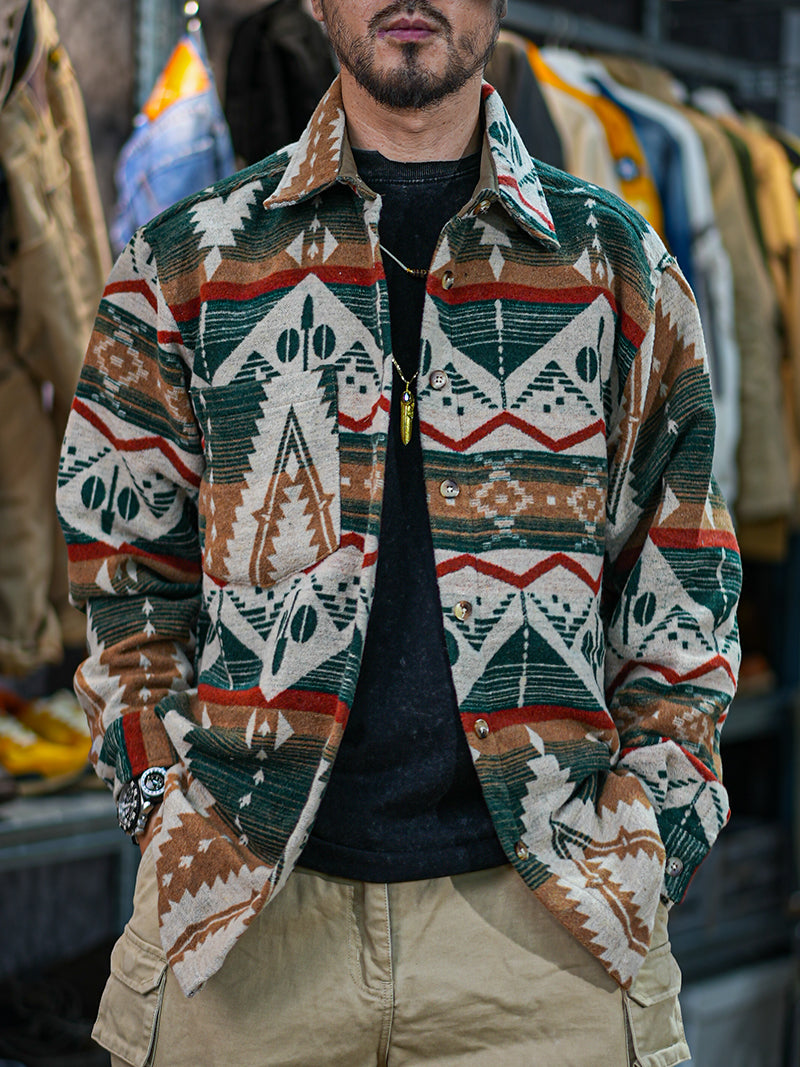 Ethnic Color-Woven Imitation Wool Long Sleeve Shirt Jacket